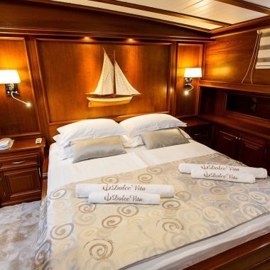 As for the deck areas, Dolce vita offers comfortable meals in the sun beautiful summer night dinners under the stars. All through the fore and aft decks, there are many spots for sunbathing. The bow of the ship is the perfect place for the guests to relax and enjoy the on board a Jacuzzi tub.