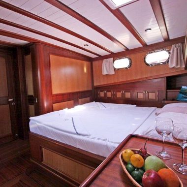 She is designed to accommodate 12 guests in her modern and spacious 2 Master, 4 Triple bed cabins with ensuite facilities. Like all our gulet yachts, she is air-conditioned throughout, including the guest cabins.